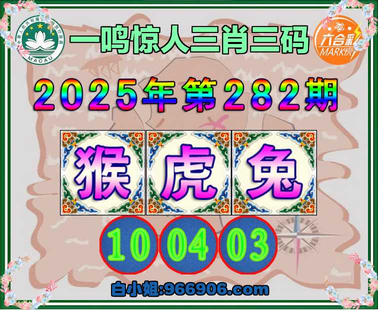 282期:【一鸣惊人】 🍔三肖三码🍔【猴虎兔】【10.04.03】开:牛41错