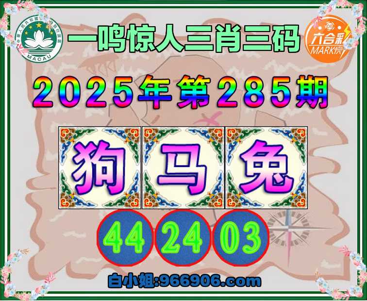 285期:【一鸣惊人】 🍔三肖三码🍔【狗马兔】【44.24.03】开:马24准