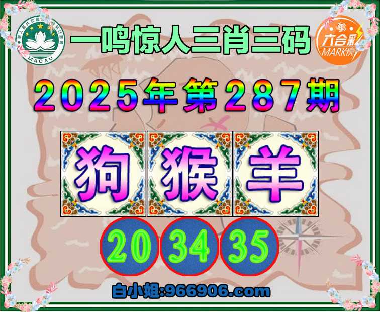 287期:【一鸣惊人】 🍔三肖三码🍔【狗猴羊】【20.34.35】开:猴34准