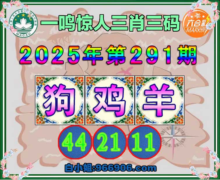 291期:【一鸣惊人】 🍔三肖三码🍔【狗鸡羊】【44.21.11】开:狗44准