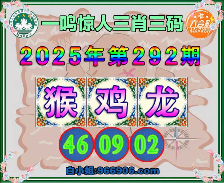 292期:【一鸣惊人】 🍔三肖三码🍔【猴鸡龙】【46.09.02】开:龙02准