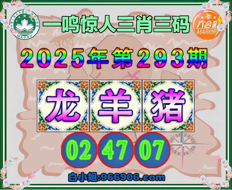 293期:【一鸣惊人】 🍔三肖三码🍔【龙羊猪】【02.47.07】开:羊47准