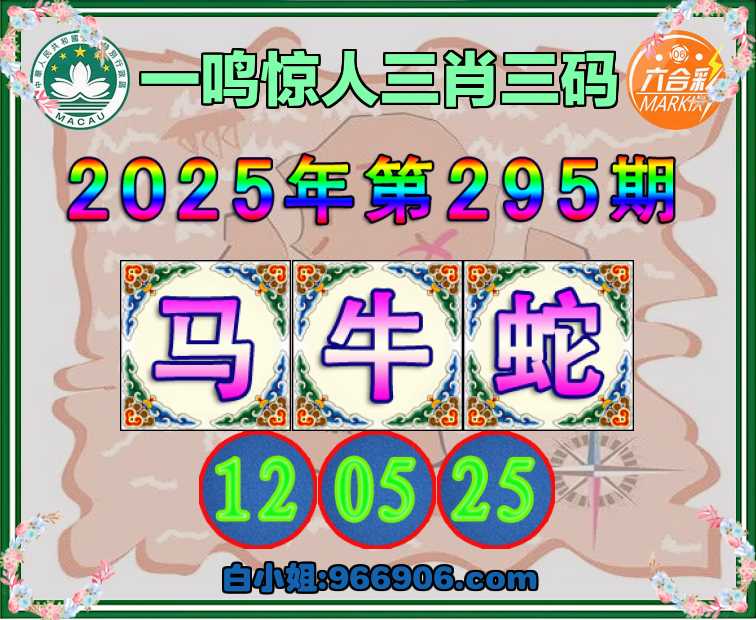 295期:【一鸣惊人】 🍔三肖三码🍔【马牛蛇】【12.05.25】开:牛05准