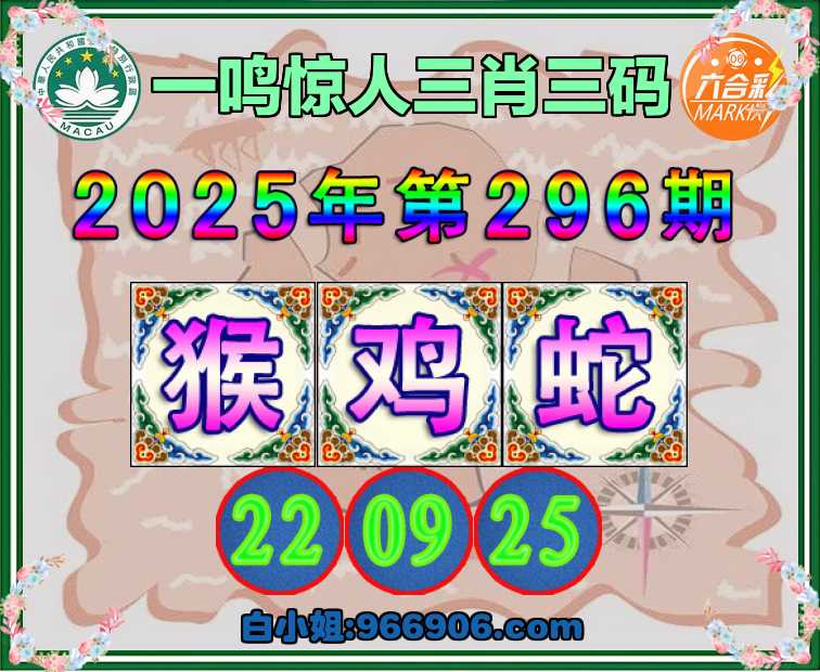 296期:【一鸣惊人】 🍔三肖三码🍔【猴鸡蛇】【22.09.25】开:猴22准
