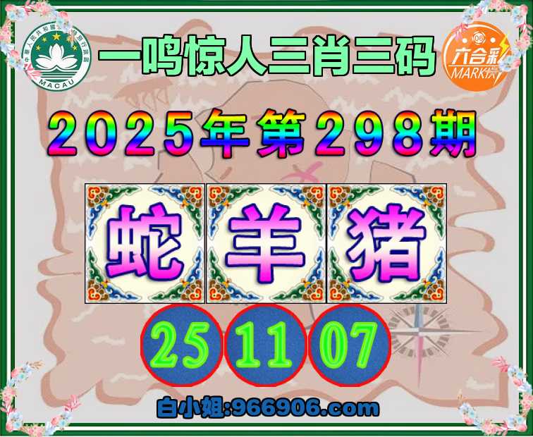 298期:【一鸣惊人】 🍔三肖三码🍔【蛇羊猪】【25.11.07】开:羊23准