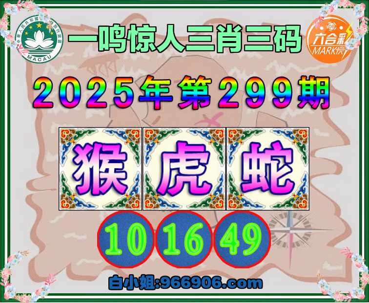 299期:【一鸣惊人】 🍔三肖三码🍔【猴虎蛇】【10.16.49】开:蛇49准