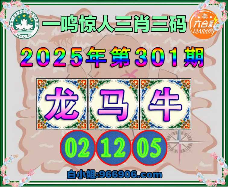 301期:【一鸣惊人】 🍔三肖三码🍔【龙马牛】【02.12.05】开:牛05准
