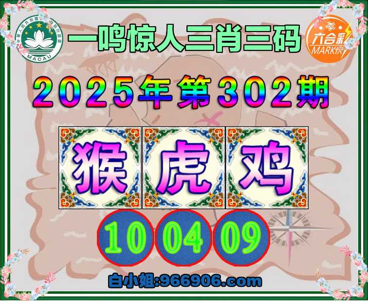 302期:【一鸣惊人】 🍔三肖三码🍔【猴虎鸡】【10.04.09】开:猴22准
