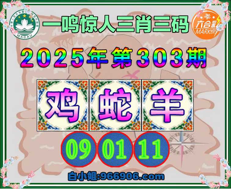 303期:【一鸣惊人】 🍔三肖三码🍔【鸡蛇羊】【09.01.11】开:兔15错