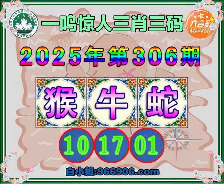 306期:【一鸣惊人】 🍔三肖三码🍔【猴牛蛇】【10.17.01】开:牛17准