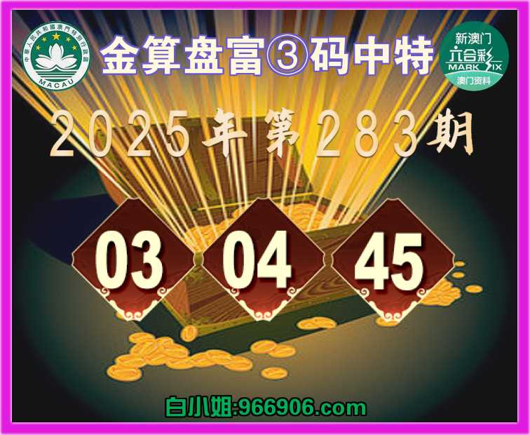 283期:『金算盘富』 🩴③码中特🩴【03.04.45】开:45准