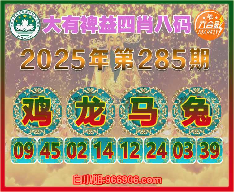 285期:〖大有裨益〗 ☘️四肖八码☘️【鸡龙马兔】开:马24准