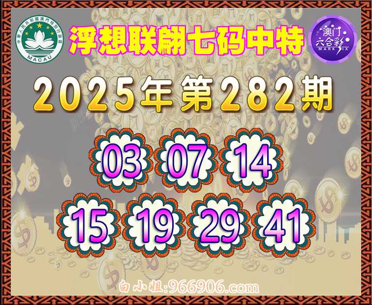 282期:【浮想联翩】 🩴七码中特🩴【03.07.14.15.19.29.41】开:41准