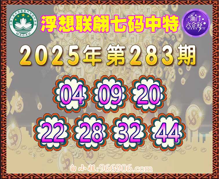 283期:【浮想联翩】 🩴七码中特🩴【04.09.20.22.28.32.44】开:45错