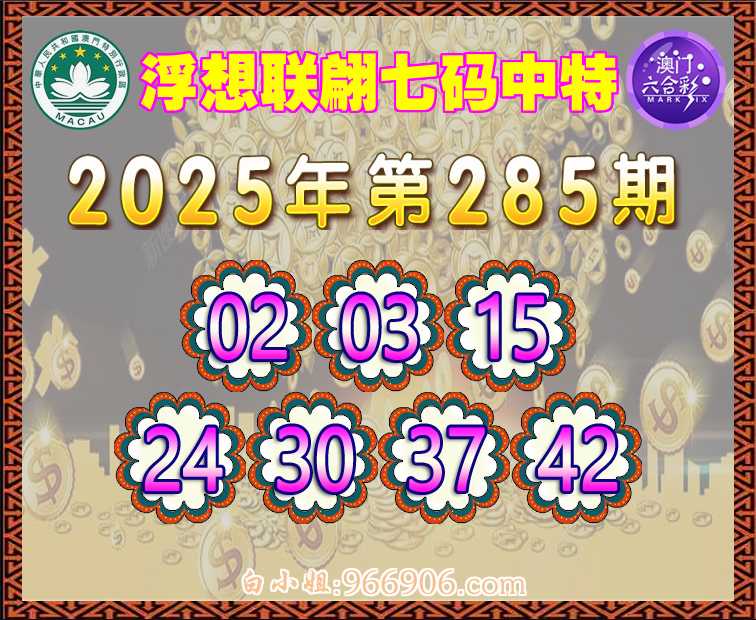 285期:【浮想联翩】 🩴七码中特🩴【02.03.15.24.30.37.42】开:24准