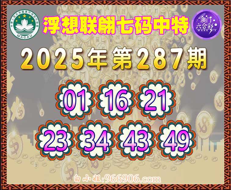 287期:【浮想联翩】 🩴七码中特🩴【01.16.21.23.34.43.49】开:34准