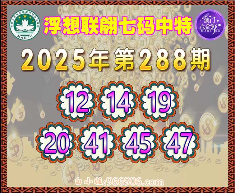 288期:【浮想联翩】 🩴七码中特🩴【12.14.19.20.41.45.47】开:14准