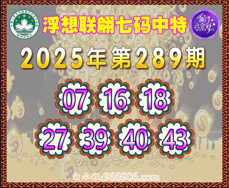 289期:【浮想联翩】 🩴七码中特🩴【07.16.18.27.39.40.43】开:42错