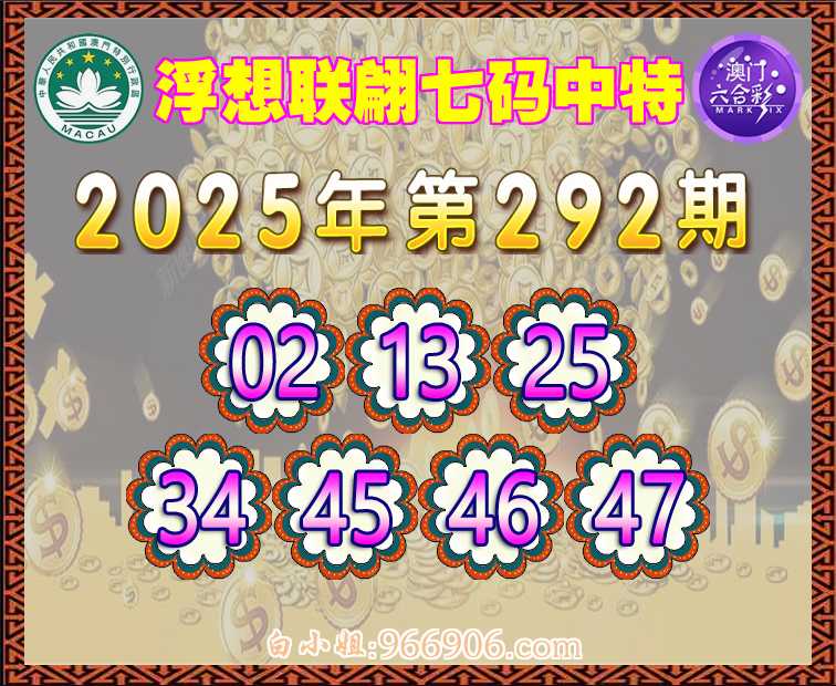292期:【浮想联翩】 🩴七码中特🩴【02.13.25.34.45.46.47】开:02准