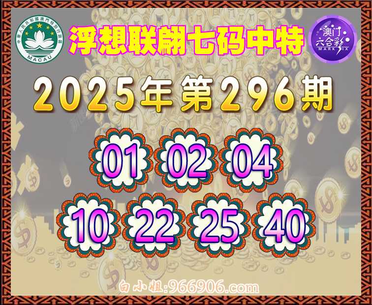 296期:【浮想联翩】 🩴七码中特🩴【01.02.04.10.22.25.40】开:22准