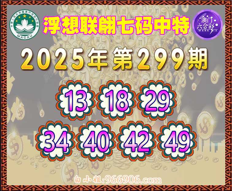 299期:【浮想联翩】 🩴七码中特🩴【13.18.29.34.40.42.49】开:49准