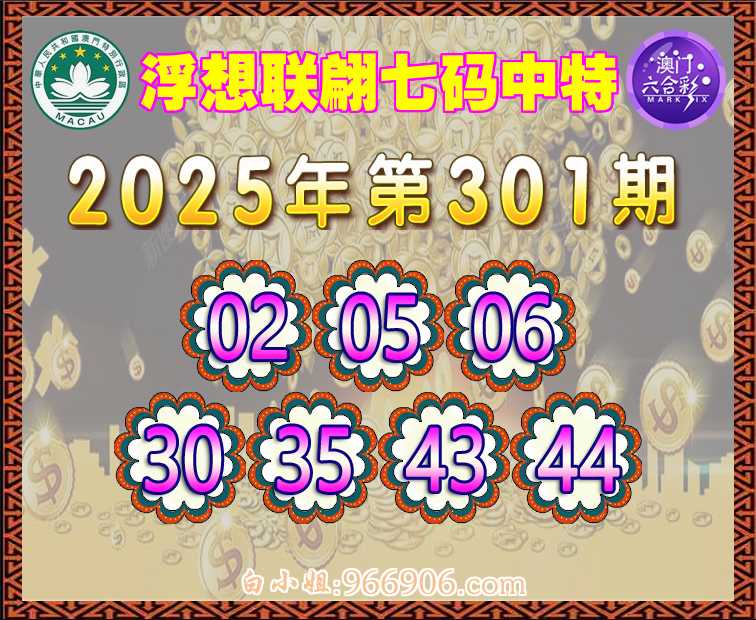 301期:【浮想联翩】 🩴七码中特🩴【02.05.06.30.35.43.44】开:05准