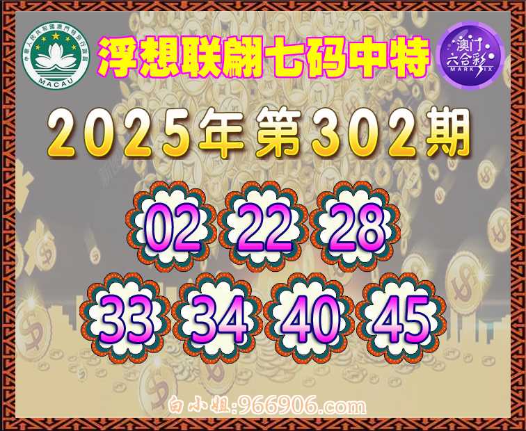 302期:【浮想联翩】 🩴七码中特🩴【02.22.28.33.34.40.45】开:22准
