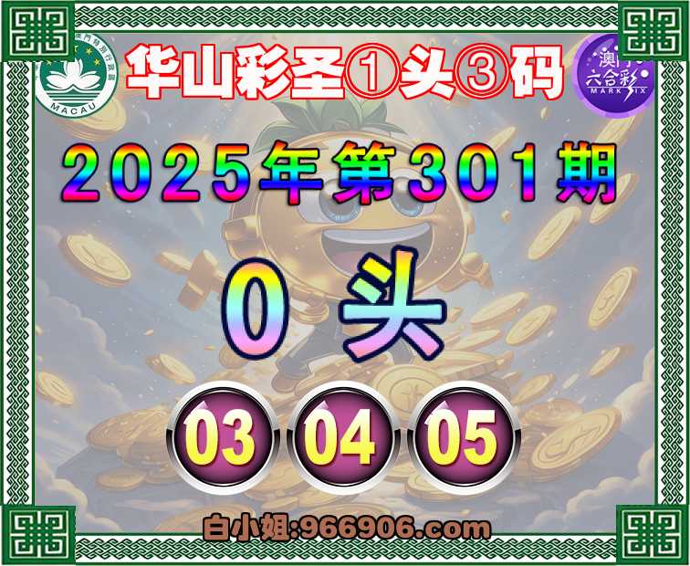 301期:《华山彩圣》 ♥️①头③码♥️【0头主:03.04.05】开:牛05准