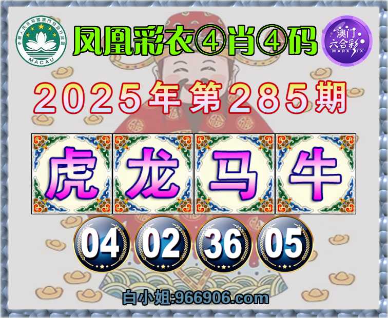 285期:《凤凰彩衣》 🥠④肖④码🥠【虎龙马牛】【04.02.36.05】开:马24准