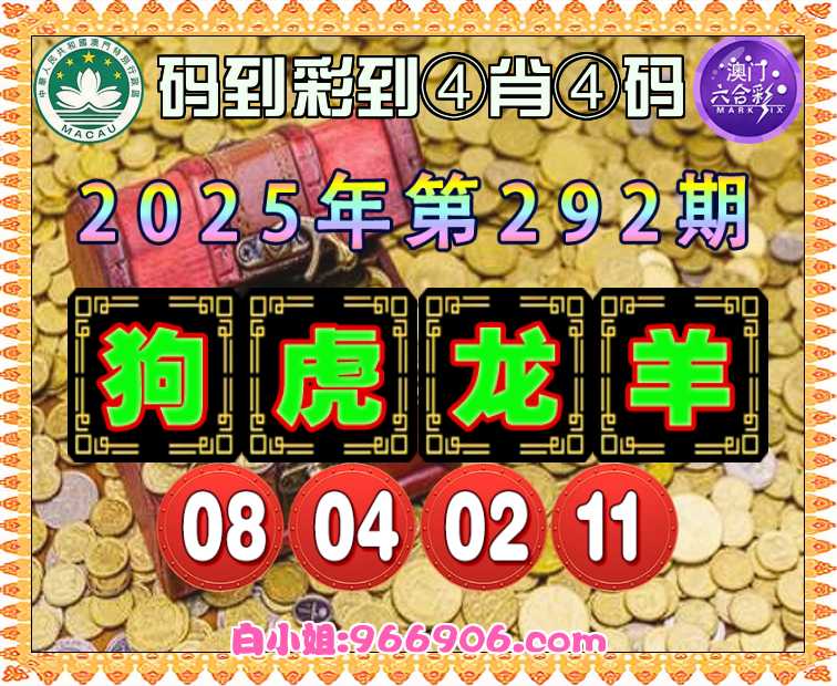 292期:《码到彩到》 ♣️④肖④码♣️【狗虎龙羊】【08.04.02.11】开:龙02准