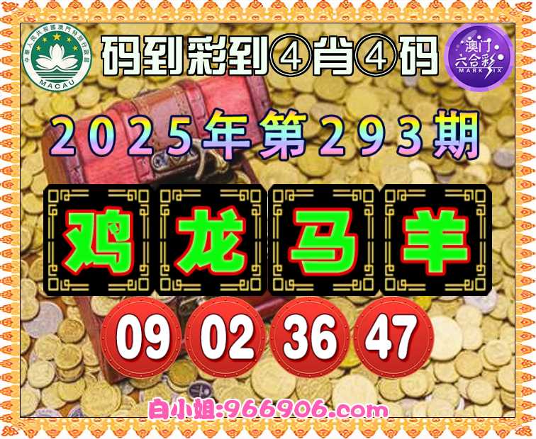 293期:《码到彩到》 ♣️④肖④码♣️【鸡龙马羊】【09.02.36.47】开:羊47准