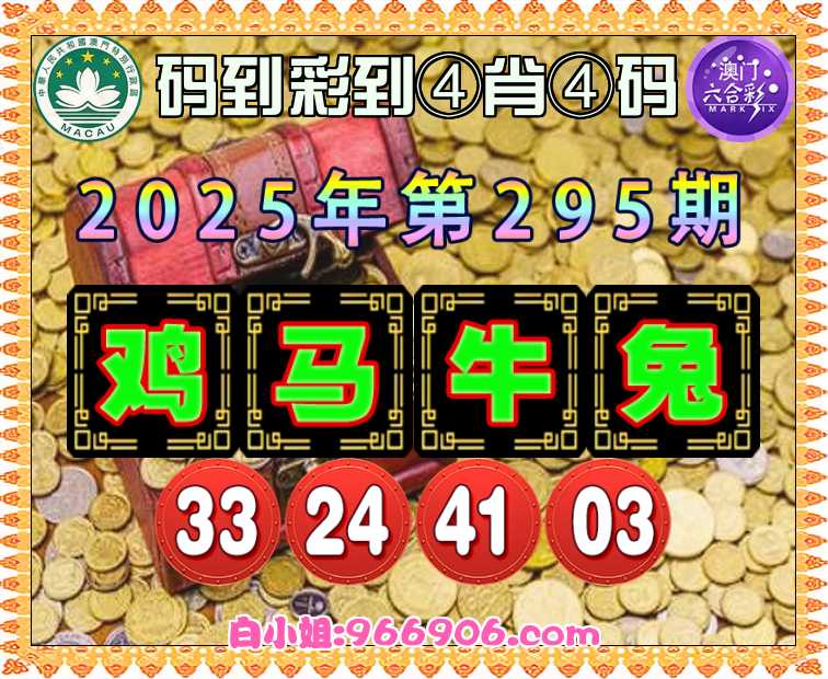 295期:《码到彩到》 ♣️④肖④码♣️【鸡马牛兔】【33.24.41.03】开:牛05准