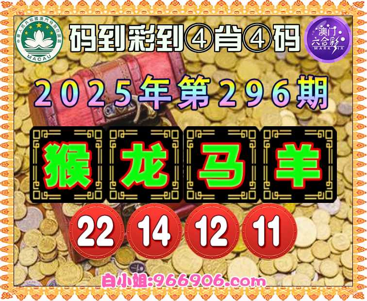296期:《码到彩到》 ♣️④肖④码♣️【猴龙马羊】【22.14.12.11】开:猴22准