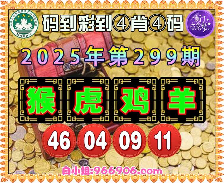 299期:《码到彩到》 ♣️④肖④码♣️【猴虎鸡羊】【46.04.09.11】开:蛇49错