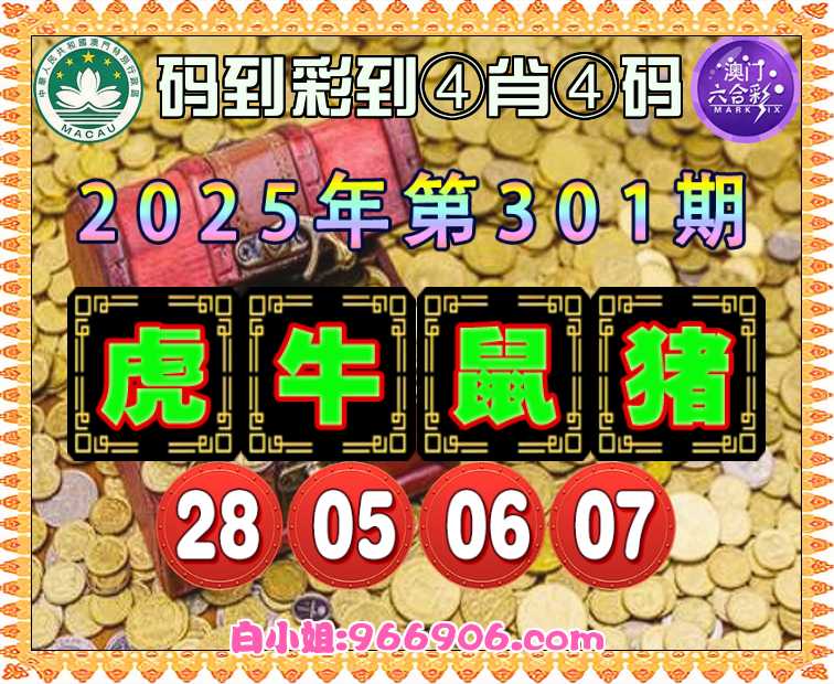 301期:《码到彩到》 ♣️④肖④码♣️【虎牛鼠猪】【28.05.06.07】开:牛05准