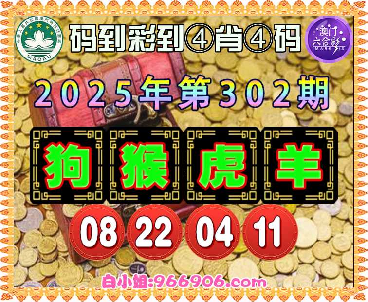 302期:《码到彩到》 ♣️④肖④码♣️【狗猴虎羊】【08.22.04.11】开:猴22准