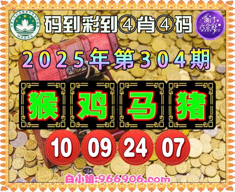 304期:《码到彩到》 ♣️④肖④码♣️【猴鸡马猪】【10.09.24.07】开:马48准