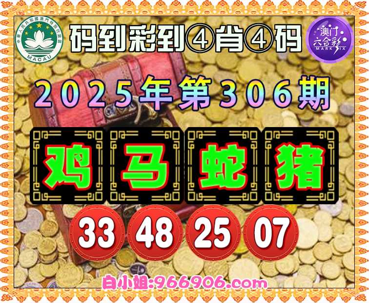 306期:《码到彩到》 ♣️④肖④码♣️【鸡马蛇猪】【33.48.25.07】开:牛17错